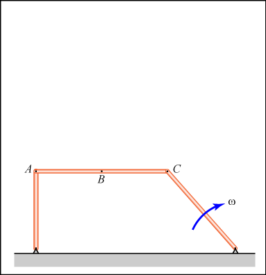 A four-bar linkage is set into motion as shown. Sketch the directions of the velocities for points A, B and C.