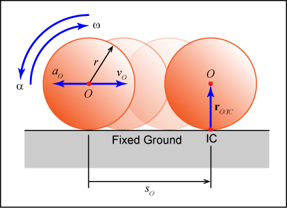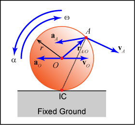 - Acceleration of a point on the wheel: aA = aO + aA/O = aO + α x rA/O - ω2rA/O