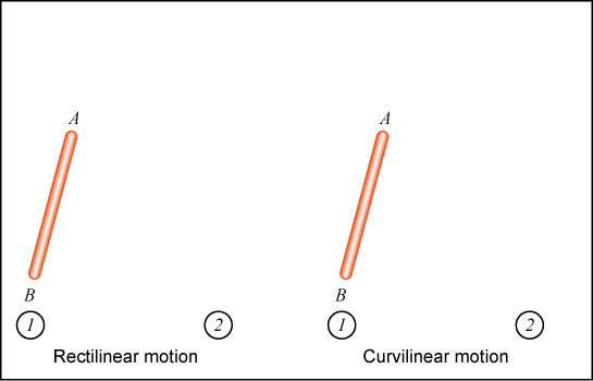 In your book, draw possible paths for the motion of bar AB as it moves from point 1 to point 2 in pure translation. Click on the image to see the answer.