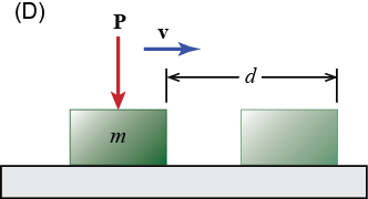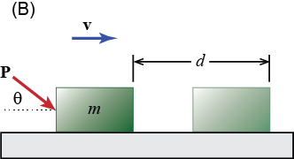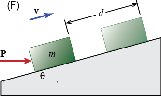 Consider the following situations where a constant force P is applied to a block over a distance d. Rank the following situations in terms of the work done by force P from greatest to least.